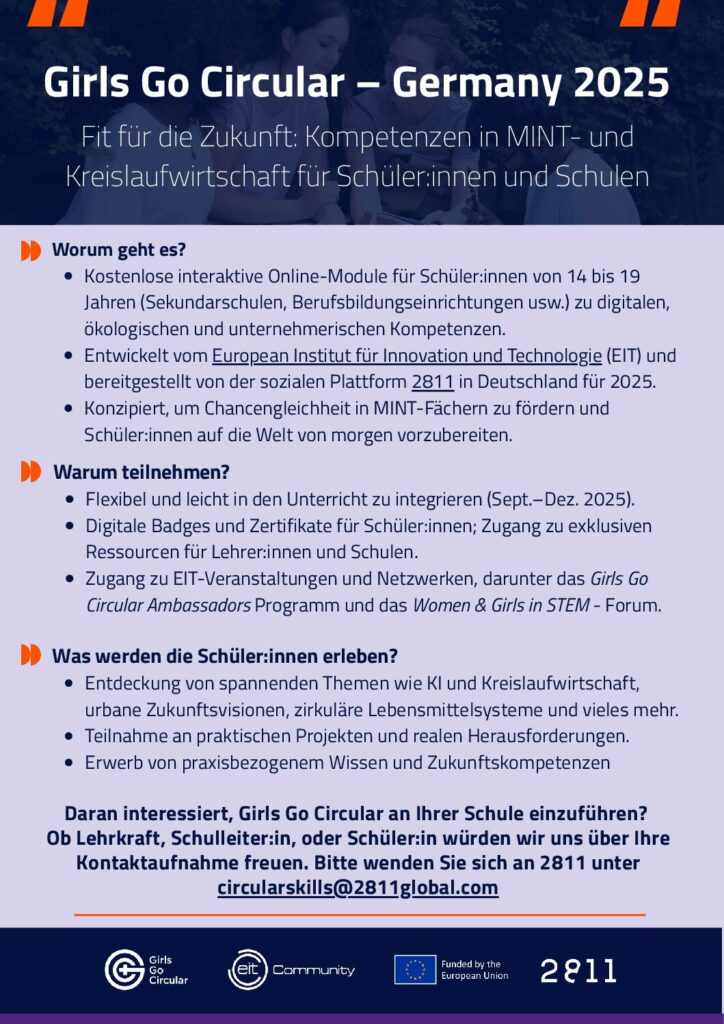 Girls Go Circular: Kompetenzen in MINT- und Kreislaufwirtschaft für Schüler:innen und Schulen