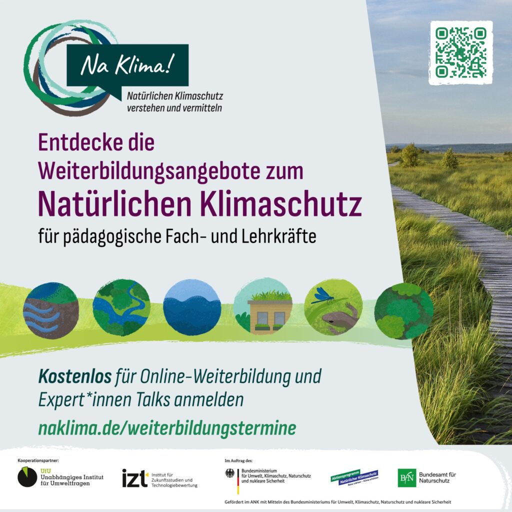 📚 Neugierig geworden? Auf www.naklima.de können Interessierte flexibel und kostenlos Termine buchen – für die Weiterbildung Na Klima! als Halbtagsveranstaltung oder in drei Modulen in zweiwöchigem Abstand sowie für das Angebot Na Klima! Talk.